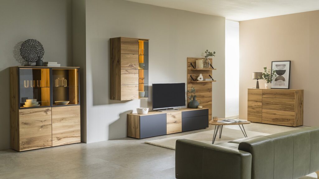 Unsere Wohnwände bieten eine perfekte Kombination aus praktischen Stauraumlösungen und stilvollem Design. Organisieren Sie Ihre Technik, Bücher und Dekorationen in eleganten Modellen, die Ihr Wohnzimmer aufwerten.